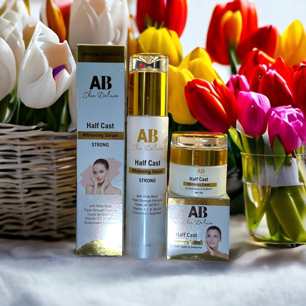 Our half cast beauty set and advance, combined with a blend of natural plant and herbs extracts. delivers extream whitening, moisturises, softens, and evens out skin tone. It has a regenerative capacity to repair early signs of ageing. It restores suppleness and revitalizes facial skin. This product has the ability to take your skin to it's highest, most purest and brightest treashold with continious use. Half cast face cream is very safe and suitable for all race and skin types.